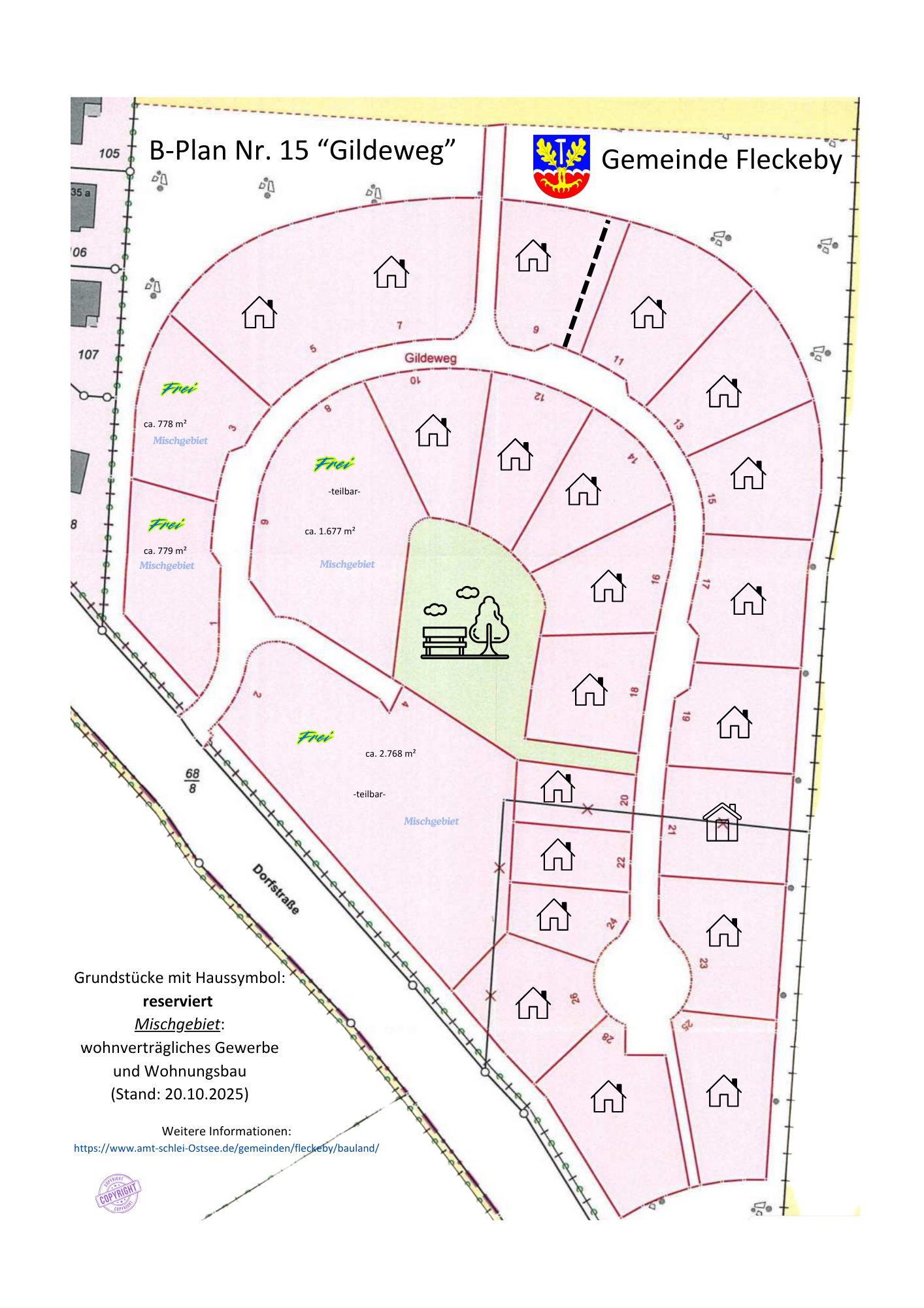 Die Erschließungsarbeiten zum Baugebiet östlich der Krogkoppel sind beendet. Nun beginnt der Hochbau und es sind auch schon ein Großteil der Baugrundstücke verkauft. Bei Interesse an einem Wohngrundstück senden Sie eine kurze E-Mail mit weiteren Kontaktdaten an gemeinde[at]fleckeby.de und erkundigen Sie sich nachdem Stand der Reservierung, der noch freien Grundstücke.